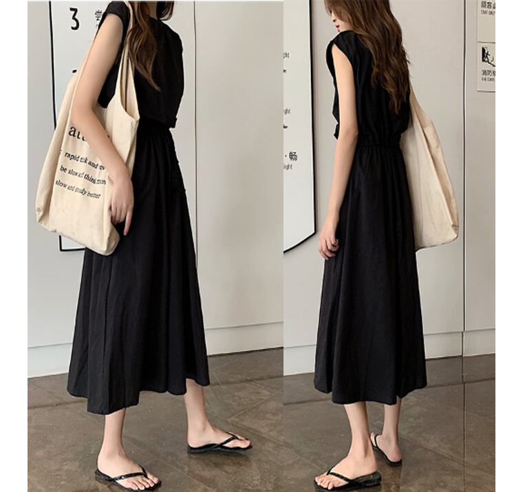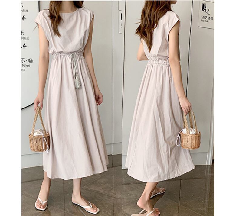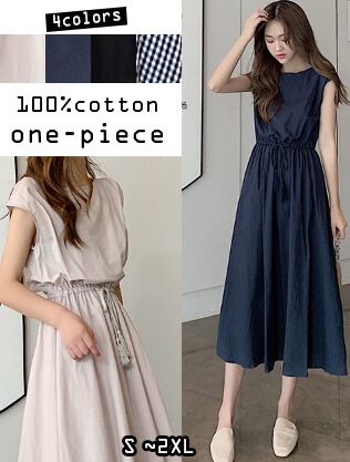 ロング丈100%純綿ワンピース