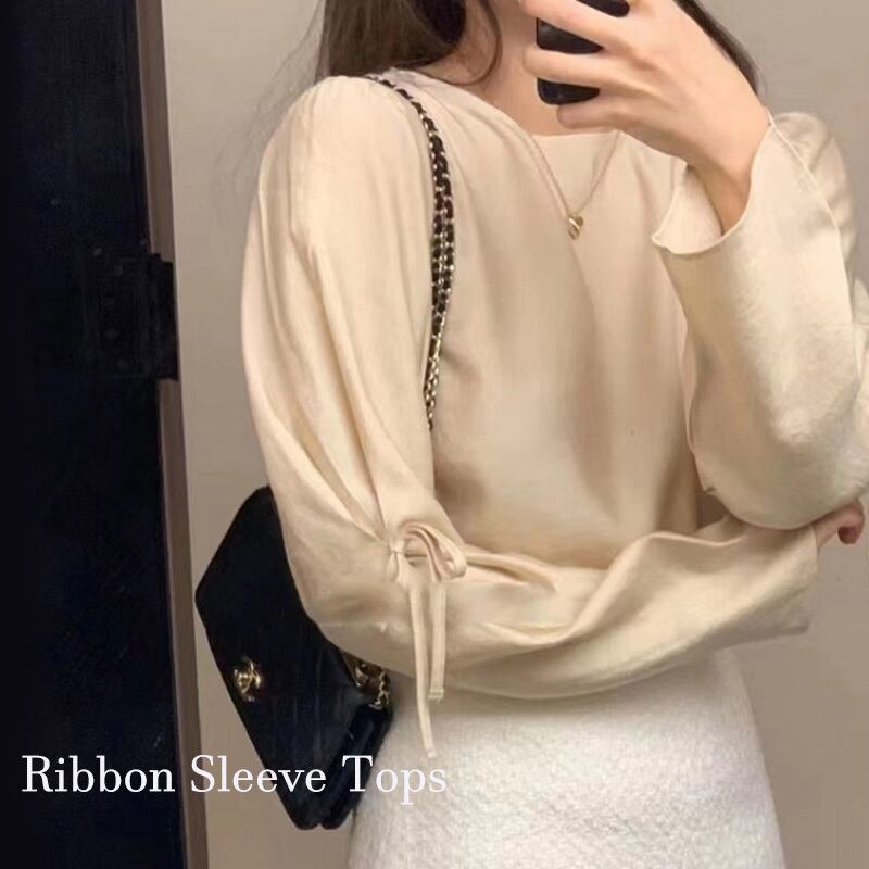・袖のリボンが大人フェミニンポイントのリボンスリーブトップス。